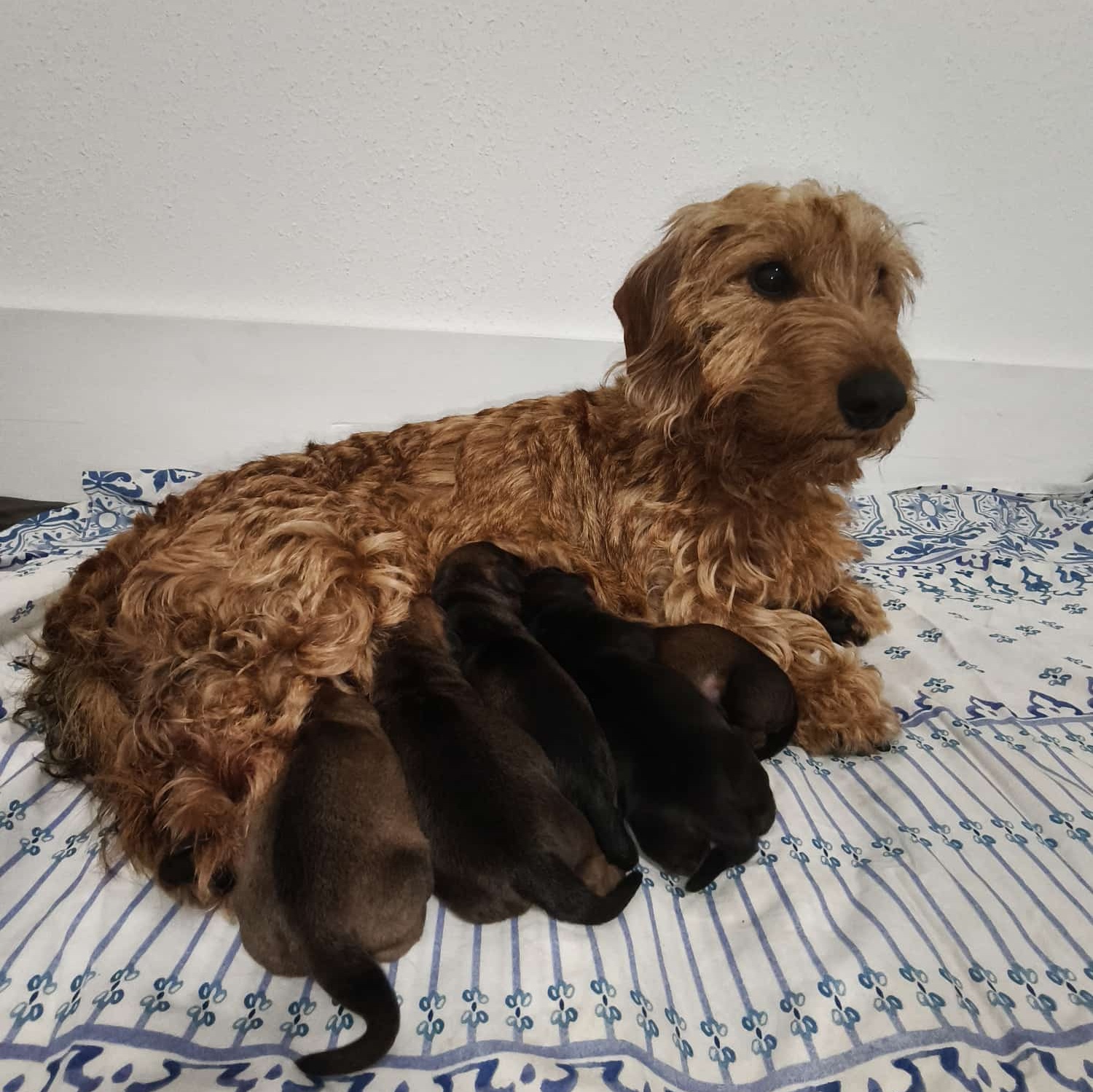 Unsere F´s von der Hirschbachquelle sind gefallen. Unsere Brezel brachtre in 5 Stunden 5 Rüden zur Welt.